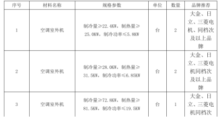 回答2:不作修改,本项目制冷量、制热量、制冷功率、风量核心参数指标已综合考量行业技术标准及产品特性差异,允许投标品牌参数存在如下偏离:负偏离:仅接受最大2%的负向偏差(含本数),超出范围视为不满足基本技术要求;正偏离:允许不限幅度正向偏差(即参数优于招标要求);经市场调研及参数比对,已确认推荐品牌大金、三菱电机、日立设备参数完全满足招标要求;上述品牌产品在制冷量、制热量、制冷功率及送风量等关键指标上均达到或超过本技术规范要求,其性能参数与招标文件具有充分兼容性。